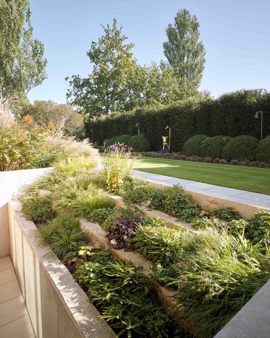 Na de oplevering van een nieuw interieur werd door Van Haneghem een bijpassende tuin gerealiseerd naar ontwerp van tuinarchitect Piet Oudolf. Het resultaat is een stoere, ontspannen buitenruimte waarin verschillende functies logisch zijn gecombineerd. Hoogteverschillen zijn opgevangen met niveaus en grote, stalen bakken, aangevuld met losse, natuurlijke beplanting die de tuin zijn eigen karakter geeft.